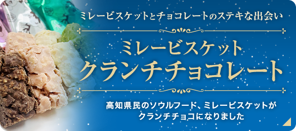 「いい素材(もの)ひょうご」をテーマにした炭酸せんべいや、ミレービスケットクランチチョコなどご当地の味を活かしたオリジナル商品を販売しています。